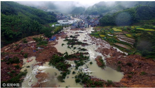 An aerial view of the landslide site in Sucun village in Suichang county, Zhejiang province, on Sept 29, 2016