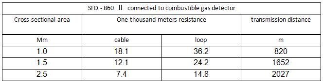 =(V controller stable voltage -v detector minimum operating voltage)/I detector biggest consumption current . According to the formula to calculate the largest connected with combustible gas detector circuit resistance of 120 ohms, and toxicity detector connected biggest circuit resistance of 240 ohms.